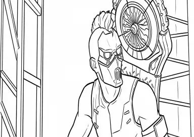 🉑ArcaneDesenho para colorir do personagem Ekko (o líder dos Fogo-Volante / Firelights) da série Arcane. A imagem mostra Ekko em sua identidade de vigilante de Zaun, usando sua máscara tática característica, óculos de proteção e o equipamento de propulsão (hoverboard) nas costas. A ilustração destaca seu penteado moicano e os detalhes da armadura em traços nítidos sobre fundo branco.