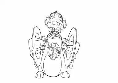 🉑ArcaneDesenho em traços nítidos (line art) do icônico Macaco Bomba (Monkey Bomb), o brinquedo mecânico e armadilha criado pela personagem Jinx (Powder) na série Arcane e no jogo League of Legends. A ilustração detalha o macaco com seus pratos (címbalos), expressão maníaca e a pedra de cristal amarrada ao peito, capturando a estética steampunk de Zaun. Imagem com fundo branco e contornos pretos, ideal para imprimir e colorir.