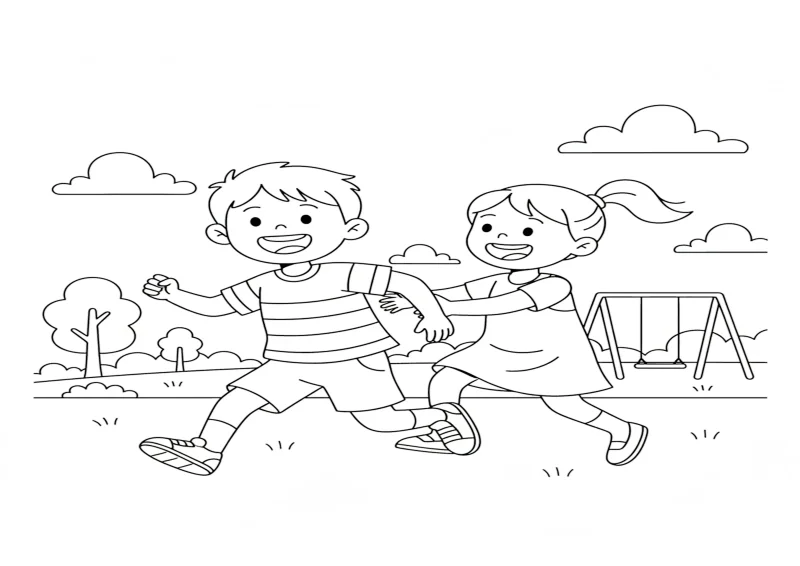 pega-pegacorrer criançasbrincadeira colorircontorno infantiljogo de rua