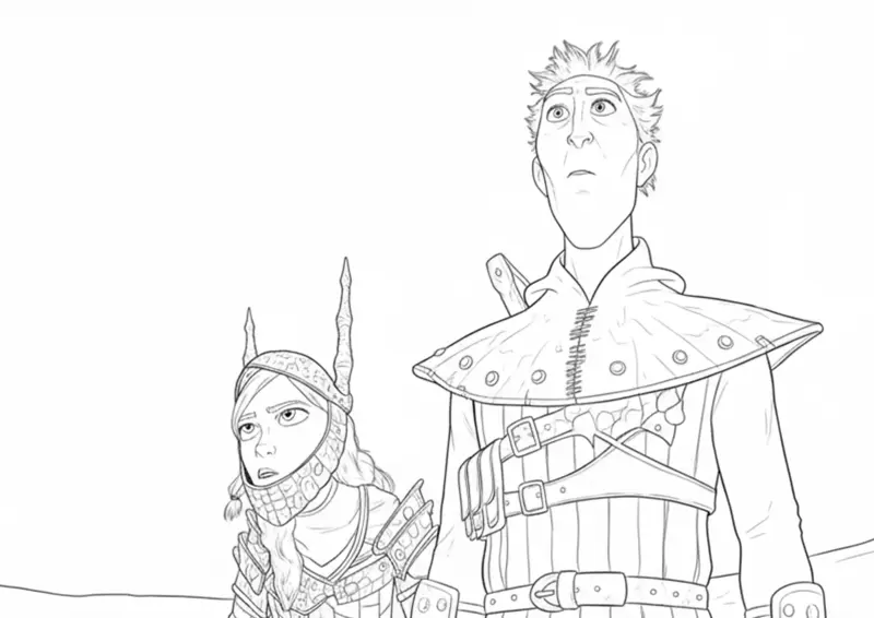 🔥Como Treinar Seu DragãoDesenho para colorir que retrata a viking Cabeçaquente (Ruffnut) ao lado do vilão Grimmel. Uma cena de Como Treinar Seu Dragão 3: O Mundo Oculto que mostra o momento da captura, ideal para baixar, imprimir e pintar.