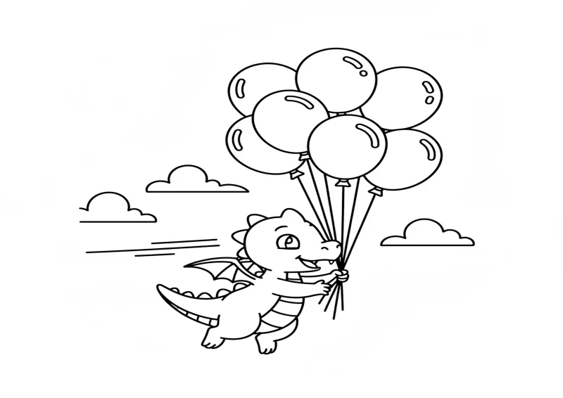 🐉DragõesUm dragão pequeno segurando balões e voando, com expressão surpresa e divertida.