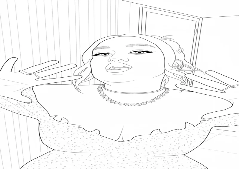 ®️Emilly Vick e os RosasDesenho para colorir de Emilly Vick em uma pose divertida, com expressão alegre e vestido elegante cheio de detalhes. Arte em estilo line-art, ideal para livros de colorir, relaxamento e atividades criativas. Linhas limpas e traços delicados destacam a personalidade vibrante da personagem.