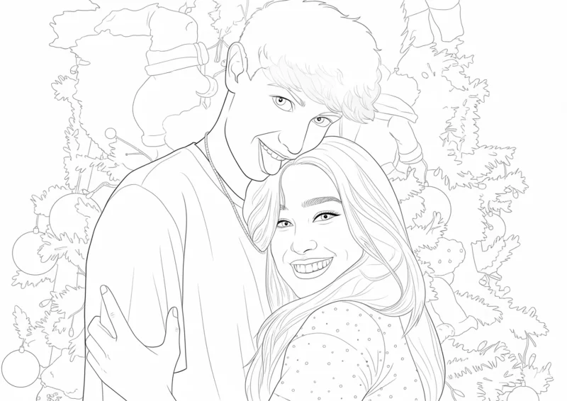 ®️Emilly Vick e os RosasDesenho para colorir de Emilly Vick e Leozinho em um abraço cheio de carinho e alegria. A arte mostra o casal sorridente em um clima festivo, cercado por enfeites e decoração de Natal. Ideal para quem ama ilustrações românticas e criativas em estilo line-art para imprimir e colorir.
