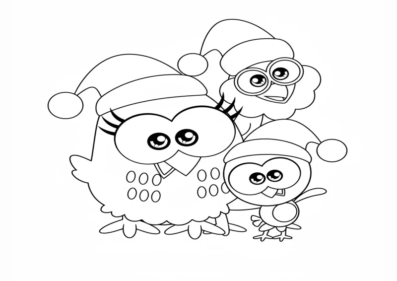 🐔Galinha PintadinhaDesenho para colorir da Galinha Pintadinha e seus amigos com gorros de Natal. Ilustração em preto e branco com traços limpos e fofos, estilo Bob Goods. Ideal para atividades infantis e páginas de colorir temáticas de fim de ano.