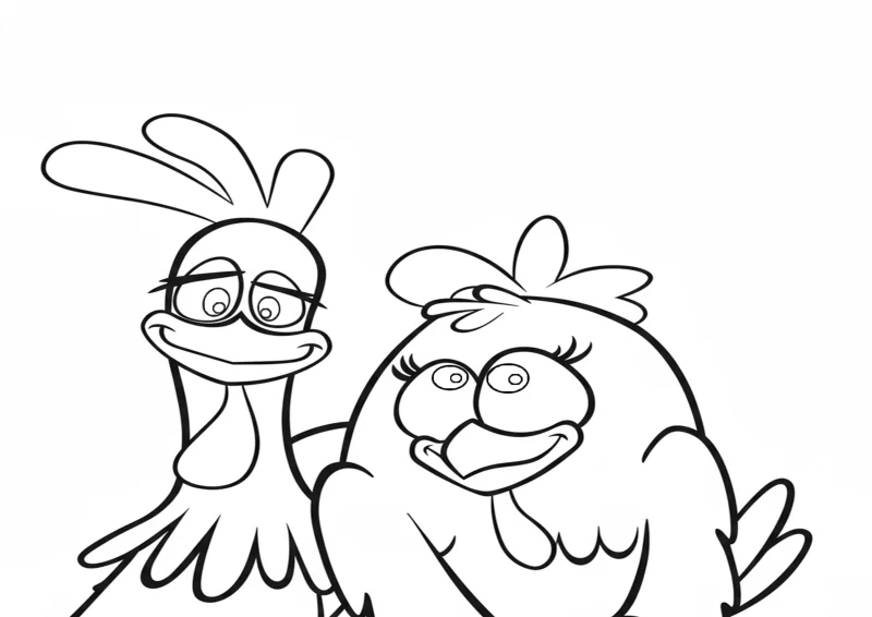 🐔Galinha PintadinhaDesenho para colorir da Galinha Pintadinha e do Galo Carijó lado a lado, sorrindo. Ilustração em preto e branco com traços limpos e fofos no estilo Bob Goods, perfeita para impressão e atividades infantis criativas.