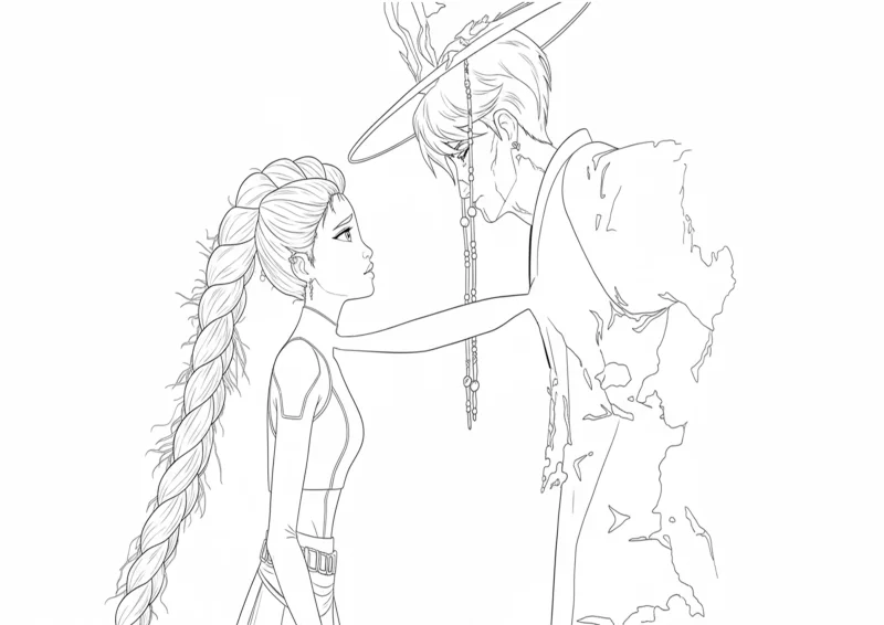 k-popguerreiraguerreiro sombrioluzescuridãoconfrontoenergiaépicocoloring bookline art