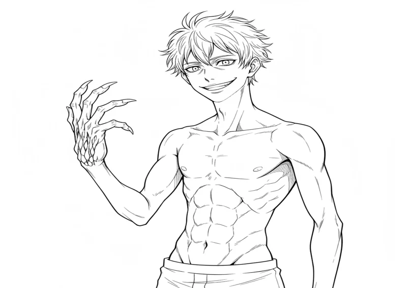 ⛩️Jujutsu KaisenMahito com sorriso sinistro, uma das mãos se transformando em forma grotesca.