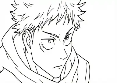 ⛩️Jujutsu KaisenDesenho para colorir de Yuji Itadori, protagonista do anime Jujutsu Kaisen. Ilustração em estilo line art com traços nítidos em preto e branco, ideal para imprimir e pintar. Retrato detalhado focado na expressão do personagem.