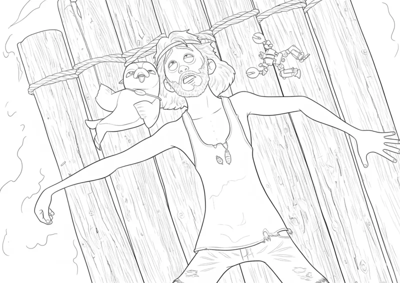 🌋Larva IslandDesenho divertido de Chuck e Clara flutuando em uma jangada após uma grande aventura no mar. Cena inspirada no estilo de Larva Island, perfeita para colorir e se divertir com personagens engraçados e expressivos.