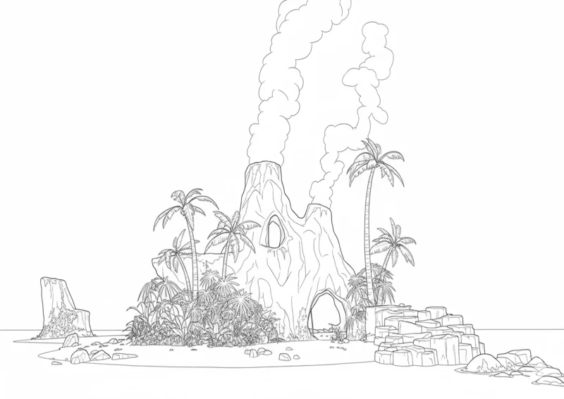 larva islandvulcãoilha tropicaldesenhos para colorirredyellownaturezacenário de ilhapalmeirasaventuraanimação infantillarva island para colorirpaisagem vulcânicailha paradisíaca