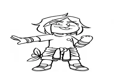 ✌️Mundo do TorajoDesenho em preto e branco (lineart) do personagem Azedo, da série de animação "Mundo do Torajo". A ilustração captura a personalidade marcante de Azedo em uma pose dinâmica: ele aparece de corpo inteiro, com a mão direita estendida à frente e a esquerda fechada, mostrando a língua em uma expressão debochada e divertida. O personagem veste seu traje característico, com bermuda, tênis e um casaco amarrado na cintura, pronto para ser impresso e colorido.