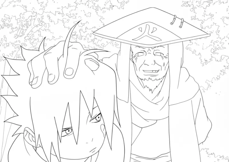 Terceiro Hokage Hiruzen Sarutobi e Naruto para Colorir