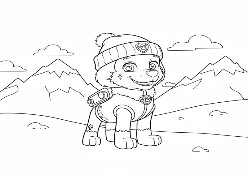 🐕Patrulha CaninaEverest, a filhote aventureira da Patrulha Canina, em uma missão de resgate na neve, perfeita para colorir e se divertir.
