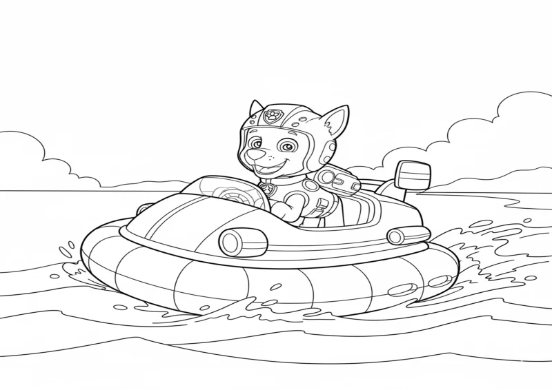 🐕Patrulha CaninaZuma, o filhote mergulhador da Patrulha Canina, pronto para um resgate aquático em um desenho para colorir cheio de energia e alegria.