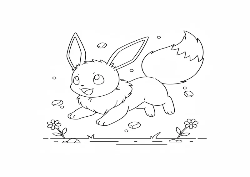 Eevee pulando alegremente com cauda levantada.