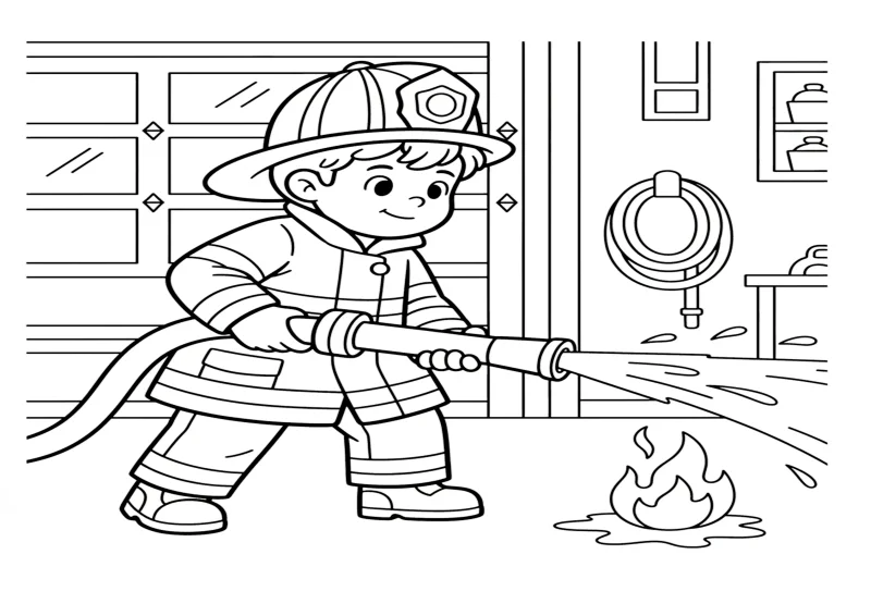criança bombeiroprofissão infantilcombate fogolivro colorircontorno