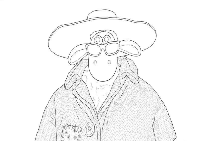 🐑Shaun o CarneiroDesenho para colorir de Shaun o Carneiro usando um chapéu grande e óculos em um divertido disfarce. Ideal para atividades infantis, papelaria e fãs da série, perfeito para imprimir e colorir com crianças.
