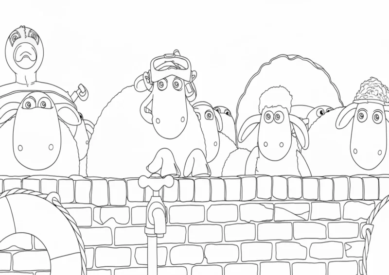 🐑Shaun o CarneiroDesenho para colorir de Shaun o Carneiro e seu rebanho se divertindo na piscina com boias e óculos de mergulho. Uma cena alegre e criativa inspirada na animação Shaun o Carneiro, ideal para crianças pintarem e se divertirem.