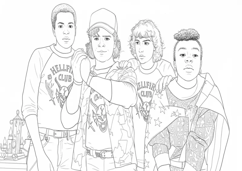 Personagens de Stranger Things do Hellfire Club para Colorir